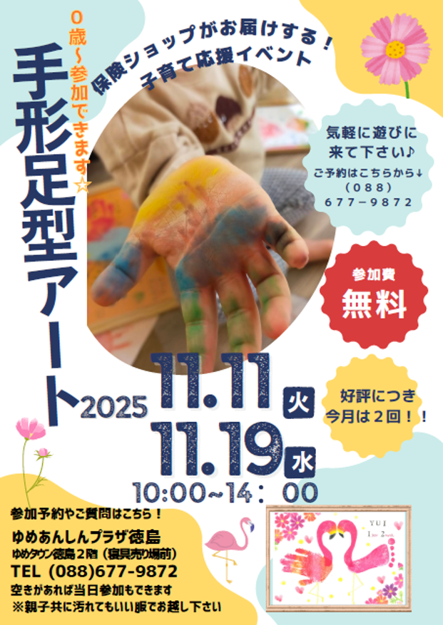 お子様の成長記録を楽しく残せる手形足型アートのイベント開催のお知らせです。