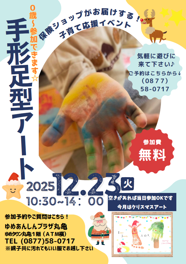 お子様の成長記録を楽しく残せる手形足型アートのイベント開催のお知らせです。 親子でお気軽にご参加ください!