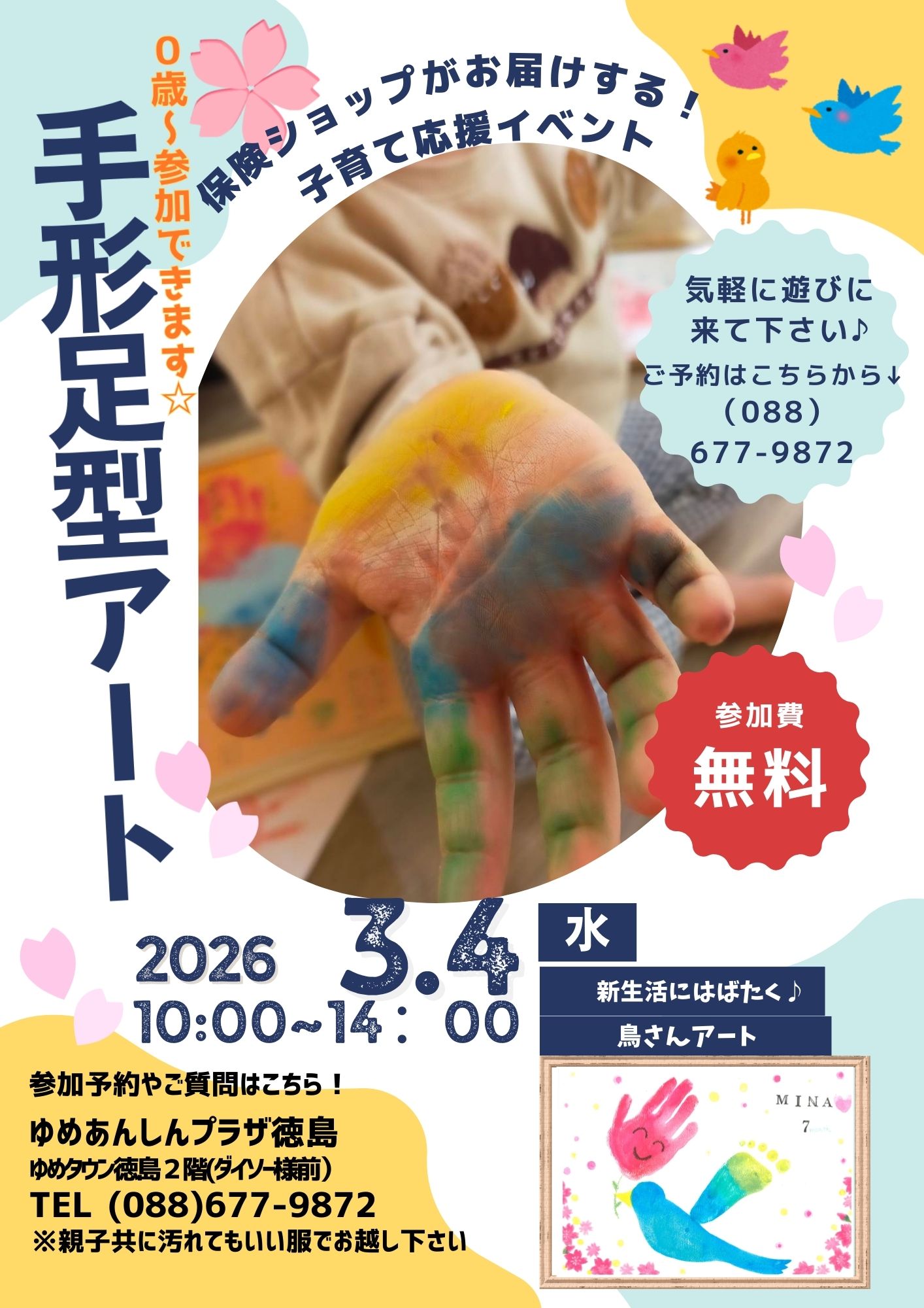 お子様の成長記録を楽しく残せる手形足型アートのイベント開催のお知らせです。 親子でお気軽にご参加ください!